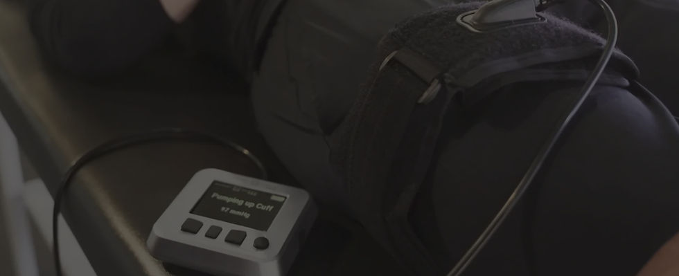 BFR is the brief and intermittent occlusion of venous blood flow while exercising. You train at significantly lower loads - typically 20-30% of your 1RM - while triggering the same hypertrophy and strength response as heavy lifting.